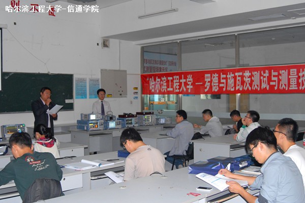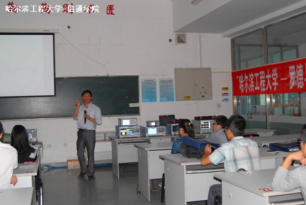 哈工程澳门十大电子正规游戏网站副院长窦峥出席了本次研讨会,并致开幕辞。代表罗德与施瓦茨公司作主题讲座的讲师为产品支持经理陈峰先生、产品经理马志刚博士、高级产品工程师王立春先生、产品工程师郭瑞女士及郝震红博士(其中陈峰先生和王立春先生均毕业于澳门十大电子正规游戏网站)。讲座题目分别为R&S无线通信应用解决方案、电台测试、R&S EMC测试解决方案、R&S 时频域联合分析解决方案。