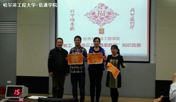 本次知识竞赛共分为学院基本知识,教学知识,科研知识和学工知识四个类别,每一个类别都设置游戏环节和抽奖项目。其中教职工分为通信所,信息所,中心所,院直等七个代表队参加比赛。比赛伊始,全体教职工以热烈的掌声欢迎主持人洪艳老师与孙安斗老师宣布竞赛开始。由于在比赛过程中穿插各种娱乐活动,老师们的积极性都很高,现场气氛热烈。在活动期间还设置幸运抽奖环节,开心的笑容洋溢在每一位老师的脸上。在竞赛的最后,根据每个小组的答题情况,获得前三名的分别是实验中心代表队,院直代表队和电子所代表队,他们均获得了荣誉证书。