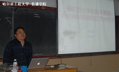 2015年9月24日下午两点,科学技术研究院常务副院长严汝建来我院做题为“研究型大学的基本逻辑与近期科研管理工作的思考”的专题报告。报告首先分析了世界著名高校的成功案例,继而深入浅出了分析了在当前形势下我校如何建设研究型大学,并对近期科研管理工作提出构想。 我院教职工共同参加,认真学习。报告会持续两个多小时,其间不时爆出热烈掌声。报告结束后,各位老师纷纷表示获益匪浅。