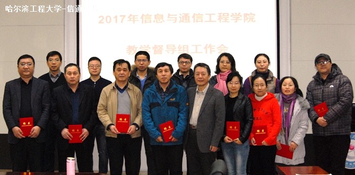 2017年1月12日,学院组织召开了新一届教学督导组成立工作会,会上学院领导为教学督导组成员颁发聘书。本次会议上,各位督导讨论明确了学院新一届教学督导组的工作重点:课程评价、教师评价、指导学院课程及专业建设,指导2018版人才培养方案的修订。同时,督导组集中讨论了 2017年督导工作的重点:教师教学评价机制、教学质量监督检查保障体系、本科教学质量标准等,为学院2017年本科教学审核评估及通信工程专业认证做好质量保障工作。