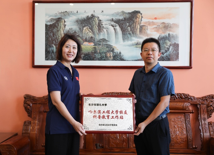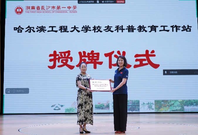 报告开场前,学院党委书记王锐向两所中学授予“澳门十大电子正规游戏网站校友科普教育工作站”牌匾。她表示,湖南是红色沃土,是学校前身哈军工首任院长陈赓大将的家乡,为学校输送了大批胸怀祖国、信念坚定、素质过硬的青年学子。工作站将以国防科普教育为纽带,让哈军工“想的是党、为的是国、强的是军”的精神内核与哈工程“三海一核”战略科技力量通过校友专家的讲述,更生动地走进中学生的视野,助力更多湖湘学子从黄河之畔、湘水之滨走向深蓝海洋,成长为担当民族复兴大任的时代新人。
