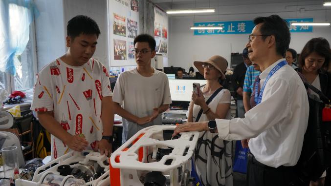 校友们走进哈工程E唯协会,近距离感受母校的科创活力。协会内,各类科技创新作品整齐陈列,从智能机器人到电子创新装置,无不展现着在校学子的智慧与创造力。学长学姐们认真聆听学弟们的讲解,不时驻足询问并提出建议。