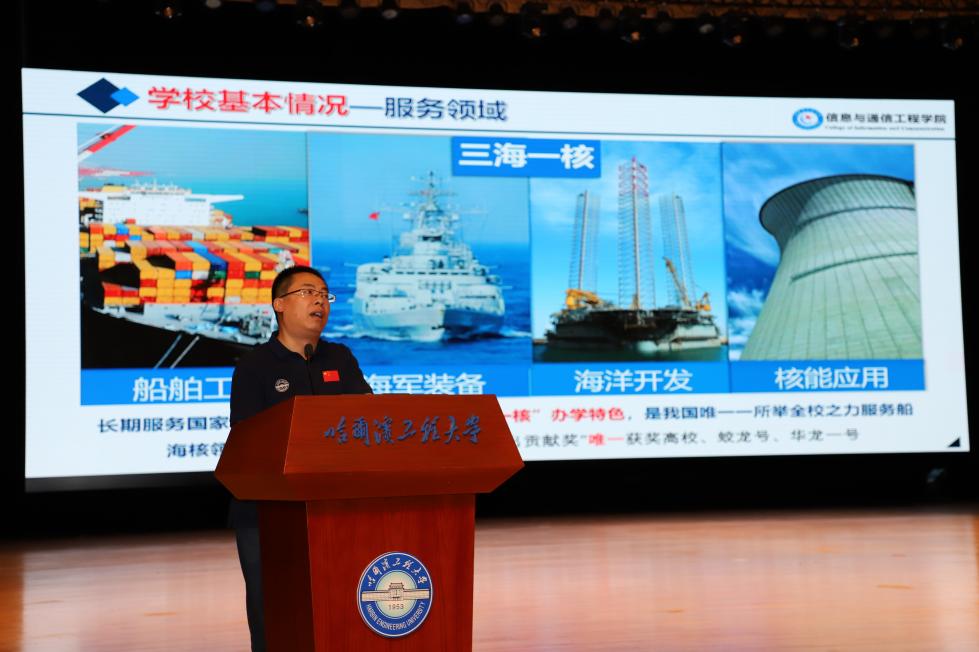 乔玉龙为新生们全面介绍了澳门十大电子正规游戏网站的深厚底蕴与卓越成就。他回顾了学院从“哈军工”海军工程系和导弹工程系一路走来的光辉历程,强调了学院服务国家“三海一核”战略需求的鲜明特色。他重点介绍了学院强大的师资力量、信息与通信工程和电子科学与技术两个一级学科的雄厚实力、国家级教学科研平台,以及电子信息工程和通信工程两个国家级一流本科专业的培养体系和目标。乔玉龙还生动展示了以“E唯”协会为代表的学生科创团队在世界水下机器人大赛等顶级赛事中屡获冠军的辉煌成绩,并分享了毕业生在升学深造和进入重点领域就业方面的优异表现,为新生们描绘了一幅清晰而高质量的大学成长蓝图。