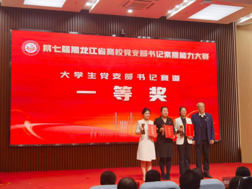 在第七届黑龙江省高校党支部书记素质能力大赛的领奖台上,我院通信所研究生第三党支部书记、辅导员李雅倩以总分第二的优异成绩,荣获大学生党支部书记赛道一等奖,创下学校在该赛道历史最好成绩!