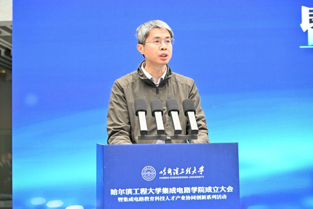 刘胜在视频致辞中对学院的发展致以深切期许。他表示,哈工程澳门十大电子正规游戏网站成立,是响应国家海洋强国战略、服务国家集成电路产业发展的关键举措,更是学科交叉融合的重要探索。要锚定“四个面向”,建设国际一流的特色学科,培养兼具船海核素养和集成电路创新能力的复合型人才,深化产教融合,放眼世界吸收先进经验,深化多维合作,为集成电路产业发展、海洋强国建设贡献力量。