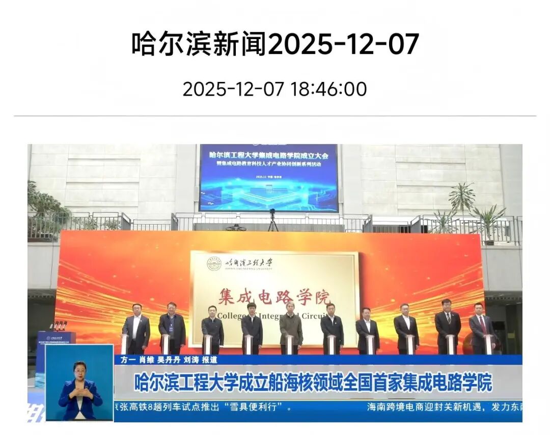 2025年12月7日,我校澳门十大电子正规游戏网站正式成立。央视新闻第一时间以《聚焦“海洋芯片”自主研发 全国高校首个船海核领域澳门十大电子正规游戏网站成立》为题进行专题报道,充分肯定学院在船海核特色领域的开创性意义。